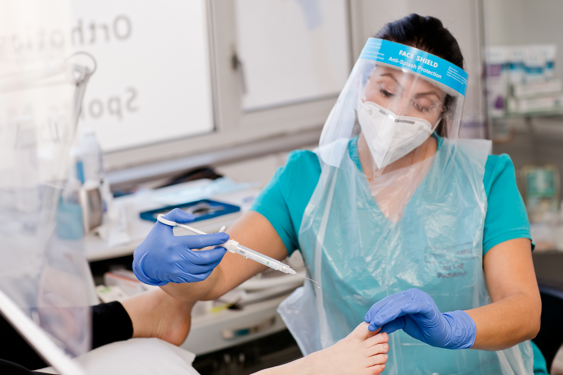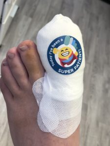 We can treat in-growing toe nails conservatively by short, intensive, regular treatments or we can remove a small section of the nail by performing a minor operation under a local anaesthetic and using phenolisation to perform a nail avulsion for long term resolution.